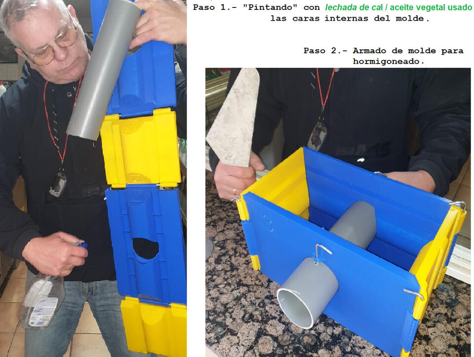 Dada la morfología de las piezas de hormigón en masa que produce el molde, se facilita su colocación por encastre sin apenas supervisión de personal calificado. Se han elaborado piezas con hasta un 40% de desechos plásticos recuperados de playas y océanos , neumáticos triturados, cristal con granulometría adecuada, escombros y se pretende la eliminación del Portland en favor de la cal para construcción emulando hormigones romanos del Siglo I y II para lograr edificaciones "incrementales" a muy bajo costo y expeditas (léase: posibilidad de ser aumentadas según posibilidades/necesidades familliares). Las canalizaciones internas invisibles de las piezas facilitan la incorporación de todas las demás disciplinas constructivas (fontanería, electricidad, A/A, domótica, extracción/incorporación de aire viciado/fresco así como incorporación de elementos pasivos contra incendios y/o aislamiento térmico/acústico).